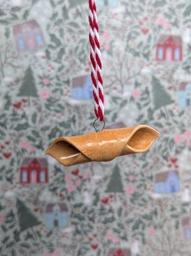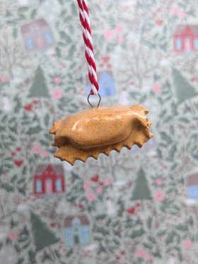 Handcrafted ceramic Christmas tree decorations of your favourite pasta and pastry shapes made with clay the same way edible pasta and pastries are made with dough!