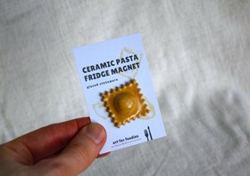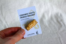 Handcrafted ceramic pasta fridge magnets in my plain glaze.