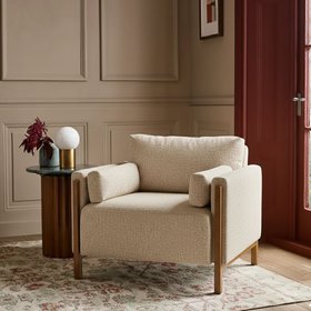 Upholstered in a textured easy-to-care-for weave in a neutral ecru colourway, it complements a neutral scheme for a tonal look that whispers quiet luxury, or provides a calming accent in an otherwise colourful or maximalist space.