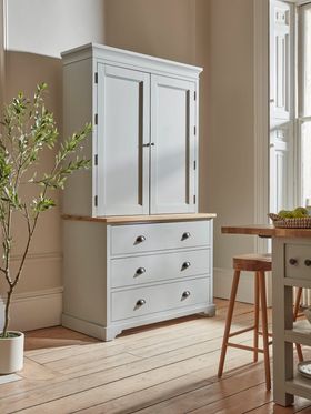 The lower half of the larder cabinet has three deep drawers with metal cup handles, perfect for storing table linen, cutlery or even dinnerware.