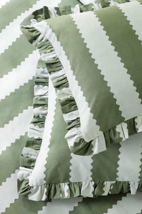 French Bedroom_Birdie Stripe Bed Linen in Matcha & Mint_£26