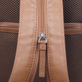 DeepL TranslateNeed a bag that's just the right size? Our Knightsbridge small pebble grain leather backpack is the go-to for keeping your essentials close. Spacious enough to fit a small tablet and yet compact and lightweight, this backpack has an impressive design packed with plenty of small item storage. It boasts two exteriors front pockets with zips for easy accessibility and a pocket with a zip on the back to easily carry your wallet or passport. Inside, a padded slip pocket is ideal for securely transporting small devices, while on the other side, a secure zipped pocket and several small slip pockets create safe space for small items, such as pens and card holders. Don't want to be limited to just one shoulder strap? Unzip the split strap and create two padded straps to distribute the weight evenly across both shoulders, bringing versatility and comfort. Whether travelling, heading to the office or exploring the city, give your journey a little luxury. Pebble grain leather adds casual elegance and helps mask wear for a rugged appearance Full-length zipped compartment keeps contents safe and secure Split padded adjustable shoulder strap brings versatility and comfortable wearability Two zipped front pockets - for secure storage and easy accessibility Pocket with stud fastening on back with breathable mesh One interior padded slip pocket - ideal for small devices One interior zipped pocket with additional slip pockets on the outside of it Durable lining protects belongings without adding bulk Finished with handsome shiny nickel fittings Subtle Dents embossed logo and engraved zip brings branded recognition Part of our smart Knightsbridge collection Available in Black and Caramel 21.50 x 6.50 x 33 cm Wipe clean. Pebble Grain Leather Selected for its natural grain, this leather ages beautifully over time. Lining 100% Polyester. Product Code: 31-1009