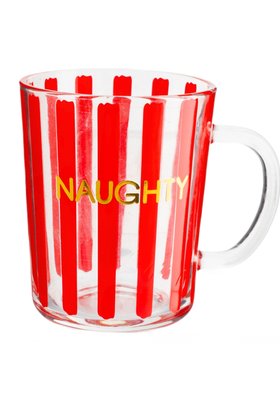 ' Naughty' Red Striped Mug. 'Nice' green mug also available.