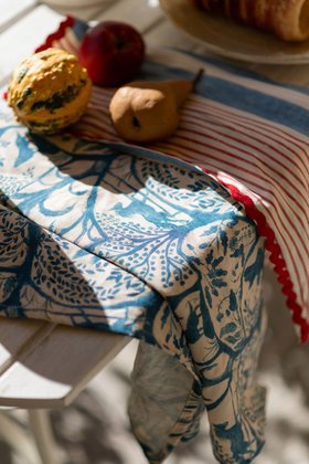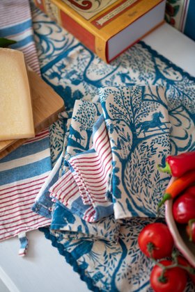 Bring Transylvanian heritage to the table with MINDTHEGAP Kitchen Linens. Soft stonewashed linen, hand-painted wildlife motifs and timeless stripes are finished with delicate rickrack or brass details, transforming the everyday meal into an experience steeped in ancestral tradition and beauty.