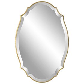 DeepL TranslateThe Keiichi Aida Mirror in Gold Finish brings a touch of luxury to your space with its shaped, beveled mirror framed by rounded edges finished in lightly antiqued metallic gold leaf. The 1" wide bevel adds a classic detail, enhancing its sophisticated appeal. This frame can be hung either vertically or horizontally and is also available in bronze for those who prefer a darker finish.