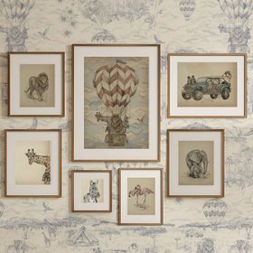Graceful giraffes tower amidst blades of swaying grass in this hand-painted design from Josephine Munsey’s Alma Collection. The artwork brings a whimsical yet elegant touch to interiors, with intricate detailing that captures the natural charm of these gentle giants.