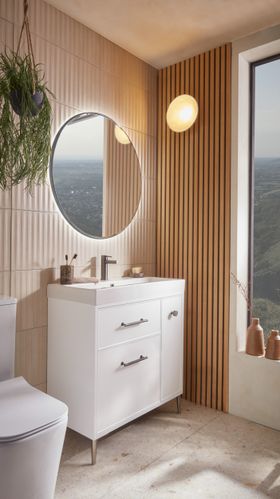 A streamlined mid-century vanity collection with style and storage to spare, Arlington features a micro-framed front, generous drawer space and a sweeping, full-width ceramic basin. Available in two sizes; complete yours with our tasteful range of handles, brassware and furniture leg options.