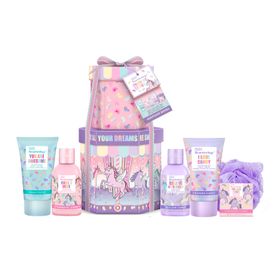 The perfect tree ready gift for any unicorn lover containing 100ml shower crème, 100ml body wash, 50ml body lotion, 50ml hand cream, 25g bath salts and a body polisher.