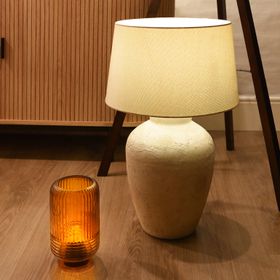 This Hadley Table Lamp is a sight to behold with its modern concrete design and large curved shape. Its cream colour is versatile and will blend in perfectly with any decor style. The lamp's shade is also complementary, giving it a refreshing and airy feel even when it's not turned on. Overall, it's a stunning piece that will add a touch of sophistication to any room.