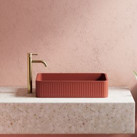 Harbour Concrete 520mm Fluted Rectangular Countertop Basin - Brick Red