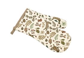 A padded gauntlet woven in 100% cotton into the woods print. Finished with bound edges and a useful hanging loop.
