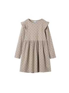 Soft ribbed dress in organic cotton. The dress is all-over printed with small hearts and decorated with delicate ruffles at the shoulders.