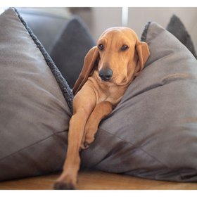 Dieses Hundebett besticht durch sein einzigartiges Design mit Zitronenmotiven. Die frischen, gelben Zitronen auf dem hochwertigen Stoff in Leinenoptik verleihen dem Bett eine lebendige und stilvolle Note. Das Kissen ist weich und bequem durch den beigen Samt innen, perfekt für den optimalen Komfort Ihres Hundes. Ein idealer Rückzugsort für Ihren vierbeinigen Freund, der nicht nur funktional, sondern auch ein dekorativer Hingucker in Ihrem Zuhause ist.