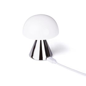 The compact and portable Mina Mini is as aesthetically pleasing as it is practical. Its sleek polished silver base beautifully amplifies the light, providing a captivating radiance that enhances any setting. With its energy-efficient LED technology under a dome-shaped lampshade, it ensures that your surroundings are illuminated with stylish brilliance, whether you're having an intimate indoor gathering or a spontaneous outdoor evening adventure. As a bedside night light or modern candle-like table decoration at your dinner party, Mina never fails to captivate and delight.