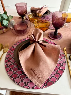 Our linen napkins and table runners are carefully selected to accompany my hand illustrated placemats and coasters. Creating a truly unique table setting. Ideal for indoor Cafecore Home Cafe table setting, mindful and thoughtful gifting.