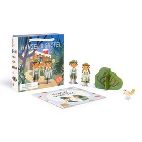 Press out and play along as you read! Eight press-out sheets give you all the characters and props you need to re-enact the story of Hansel and Gretel. From the children and the breadcrumbs to the witch and her gingerbread house, act out the story while you read it or invent alternate versions! Comes with a fully illustrated story booklet for grown-ups to read to little ones as they play or for bigger kids to enjoy themselves.