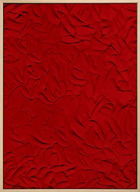 Abstract print with a textured red surface that creates depth and visual interest. Perfect wall art for adding a bold pop of colour to any room.