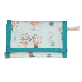 Keep pocket money safe and sound in this stylish children?s wallet covered in dancing mice. It has a velcro closure for easy opening and closing, and a few card compartments to keep photos of friends, a prepaid debit card or their ID. Matching Mimi and Milo children's accessories are also available.