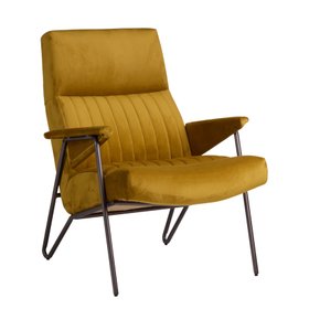 Presley Occasional Armchair - Yellow Velvet Seat - Black Metal Legs - HZH410