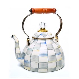 DeepL TranslateBubbling over with MacKenzie-Childs style, our Sterling Check? Whistling Tea Kettle will tell you when it?s time for tea. The heavy-gauge steel underbody is glazed with hand-painted grey checks and topped with an elegant clear glass knob.