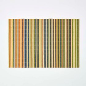 A decorative yet functional accessory, brighten up your dining room with these stylish placemats. Crafted using 100% natural, eco-friendly bamboo, they feature a trendy striped pattern in bright shades of orange, yellow, and green. Whether you are enjoying a meal indoors at a traditional dining table or outdoors on a picnic, this set of 2 colourful placemats are the ideal table accessory.