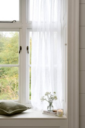 DeepL TranslateThessaly Linen Sheer Curtain Panel £40, Marling Linen Mix Cushion in Sage £40, Night Fall Scented Candle With Wooden Lid £15