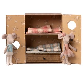 See more from this collection A true Maileg classic item. Truffles is an adorably pudgy pig who can sit straight up because of the beans in its bottom. Truffles have short arms and a curly little tail. You can find this soft pig in three sizes. Size: Height: 40.00cm, Net weight: 0.34kg Material: Cotton/Linen Filling : Recycled Polyester/PP Pellets