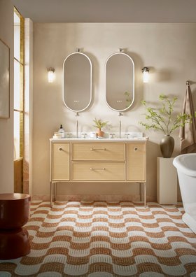 The Walcot Pill 400 x 800 Mirror in Black offers simplicity and functionality alongside elegant design. Created to service the modern bathroom and complement classic style, the Walcot mirror boasts innovative technology such as a Three Touch Sensor, Ghost Glass and Demist, alongside a circular design with a range of frame and mount options.