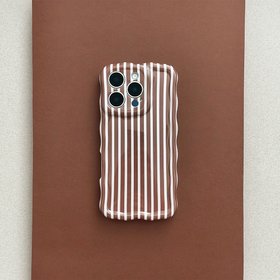 DeepL TranslateMinimalist design meets modern detail with the Wavy Phone Case in Chestnut Stripes. Featuring warm chestnut brown with crisp white stripes, this clean-lined pattern is elevated by a playful wavy-edged silhouette that gives your phone a distinctive finish. Slim but sturdy, it keeps your phone safe from bumps and scratches, while the glossy finish makes it a total selfie star. *This Phone Case is not compatible with Camera Lens Protectors* Lightweight, easy-to-carry design Full access to all ports Raised lip around the screen for extra protection Raised edges around the camera to help protect your lenses Signature wavy edges for a unique, elevated look Clear silicone front, design wraps around the back and extends halfway around the sides