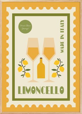 Limoncello: a classic Italian drink. This poster is designed like a postage stamp, which gives it a quaint and retro vibe.