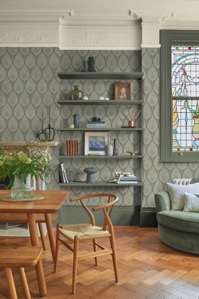 A fairytale brought to life in velvet relief, Woodland Fable Emerald is a richly tactile celebration of natures quieter moments. Stylised peacocks perch among flowering branches and layered leaves, their forms etched against a deep emerald backdrop.