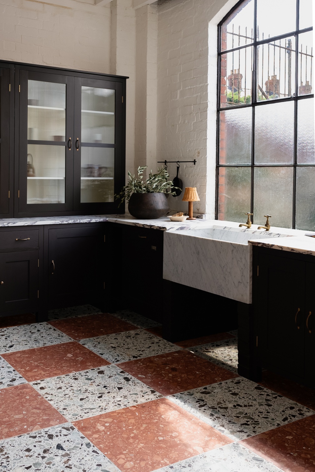 While black and white porcelain floors will always, always look smart, remember that porcelain has many faces so why not tap into our Hacienda collection where you get two trends in one: chequerboard meets Ibizan finca, putting the squares on a point or keeping them linear as you please. The large format and saturated colour of the porcelain Stucco collection is a great consideration in a more modern or pared-down home – Red meets Ivory is a current favourite of ours. For extra texture though, get a load of our Rialto Terrazzo tiles, choose your partnership and lay them down with pride in a Mid-Century kitchen or modern rustic bathroom.